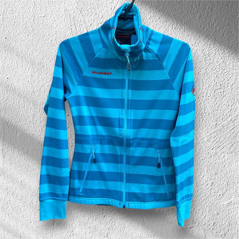 в233-495 Флисовая кофта Mammut Оригинальная кофта Mammut Swiss Design – это сочетание функциональности, комфорта и качества, которую ценят путешественники, спортсмены и любители outdoor стиля. Легкая, приятная к телу ткань с флисовым покрытием сохраняет тепло и отлично отводит влагу Особенности модели: ✔️ Оригинальный Mammut (Switzerland) ✔️ Материал: 97% полиэстер, 3% эластан — эластичный и дышащий ✔️ Мягкий флисовый внутренний слой ✔️ Два боковых кармана на молниях ✔️ Двойная молния для удобства ✔️ Приталенный спортивный крой ✔️ Яркий голубой цвет с контрастными полосами Размер: XS Ширина: 41 см Длина: 62 см Рукав от шеи: 76 см ⭐️ Состояние: отличный ЦИНА: 1 100 грн.