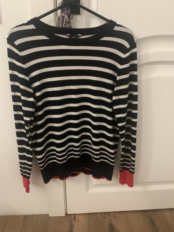 Дуже стильний та якісний, з акцентним червоним кольором. Розмір 12. Довжина 59см, ПОГ 49см, рукав 59см, плечі 41см. Вітаю!🎉 дивіться інші моі оголошення, там багато цікавого 😘