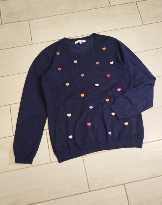 Женский темно синий джемпер с вышивкой сердечки.Склад материалов 70вискоза,30нейлон.Стан хорош, без дефектов.На размер М. длина 62 ширина в груди 46-63 ширина низа 41-64 длина рукава 58 отправка новой и укроштой оплата на карту або безпечна оплата Пишайте, чтобы не пропустить обновление
