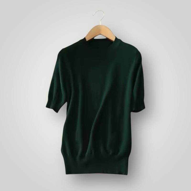 Джемпер из 100% шерсти с короткими рукавами и круглым вырезом. Это очень универсальная вещь. Популярный фасон. Выглядит аккуратно, элегантно, немного городской шик. Состав: 100% шерсть, которая ранее никогда не использовалась, не перерабатывалась и не смешивалась с другими волокнами или синтетическими материалами. Волокна такой шерсти отличаются прочностью, эластичностью и долговечностью. Изделия из нее хорошо сохраняют тепло. Джемпер с международным знаком качества Woolmark, который гарантирует, что продукт на 100% состоит из чистой натуральной шерсти и соответствует высоким стандартам производства. Присутствие этого знака на изделии гарантирует потребителю, что продукт состоит из 100% чистой натуральной (первичной) шерсти и соответствует строгим стандартам качества, установленным компанией The Woolmark Company. Замеры: плечи 38 см, рукав от линии плеча 26 см, полуобхват груди 45 см, длина по спине 60 см. Состояние новой вещи.