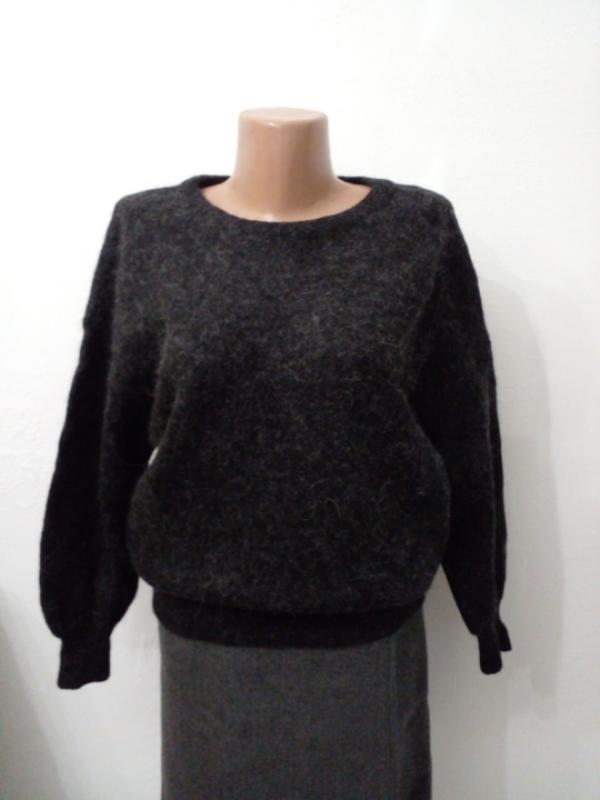 Теплый, трикотаж плотный как водяной, но мягкий, 50% альпаки, 26% шерсти мериноса, 21% полиамид и3% эластан. Плечи спущены, рукав более шире. Размер указан ХЛ, но можно и на более крупные.Без торга пог-58 пот-52 поб-46-56( трикотажная резинка) рукав-72(от горловины), бицепс-20 длина-63-65(+-)