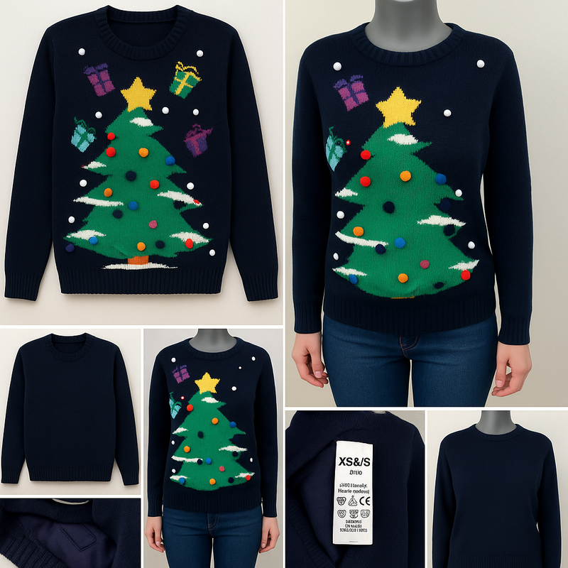 🎄 Рождественский джемпер Xenos с LED-вогниками • XS/S Cвяточный джемпер в темно-синем цвете с яркой новогодней елкой, помпонами и подарками - создан для настроения! Фишка модели: в узоре вмонтированы маленькие LED-вогники, которые мерцают при включении (блок питания находится внутри). ✔️ Особенности модели: Бренд: Xenos (Нидерланды) Размер на наборе: XS/S Материал: 100% акрил Изнутри есть мягкая подкладка, чтобы провода от гирлянды были незаметными и удобными при носке LED-огники работают от маленького батарейного блока (расположен сбоку внутри джемпера) Круглый вырез, длинный рукав Мягкая приятная вязка, комфортная к телу Яркий новогодний принт + помпончики 📏 Оригинальные замеры: (в спокойном состоянии, без растяжения) Длина по спинке: ~65 см Полуобхват груди: ~50 см Полуобхват низа: ~46 см Ширина плечей: ~45 см Длина рукава: ~58 см 💡 Состояние: присутствуют следы ношения. Огнители работают. ВАЖЛИВО ! Безопасная оплата только на Укрпочту и Meest