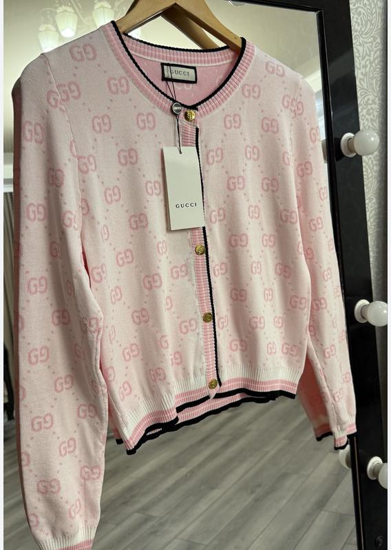 Розовая трикотажная кофта с длинным рукавом бренд Премиум Брендирования фурнитура из метала золотого цвета Размеры с,м