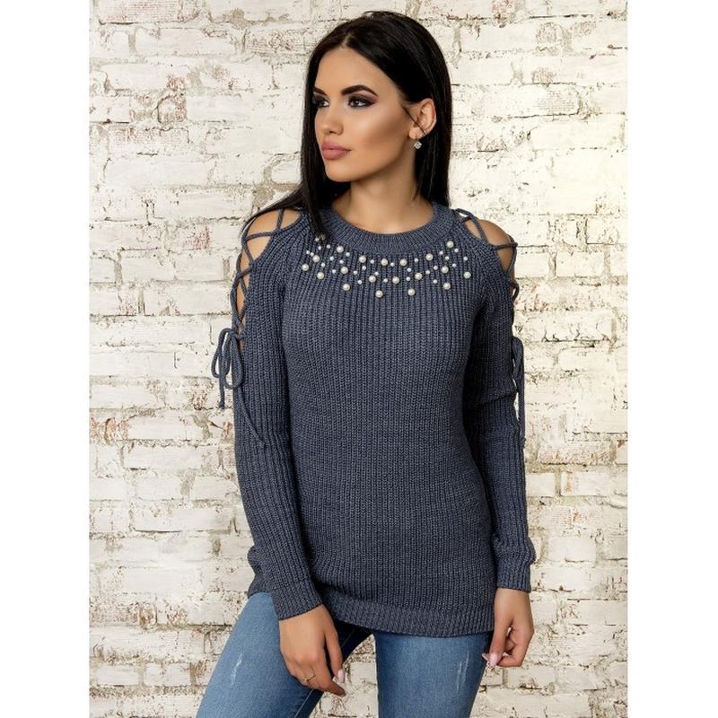 Очень красивая кофточка, все бусинки пришиты. Цвет - стальной серый. Смотрится очень стильно и элегантно. Состав: 40% шерсть; 10% мохер; 50% акрил. Длина изделия - 64 ± 2-3 см. По длине рукава – 67 ± 1-2 см. Размер универсальный 42-44-46