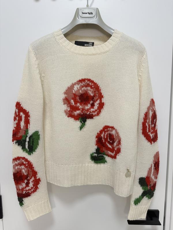 Кофта Love Moschino 42р. Одягала раз, але зробила затяжку сережкою. Нитку перетягнула всередину, зовні не помітно, дивіться фото будь ласка.