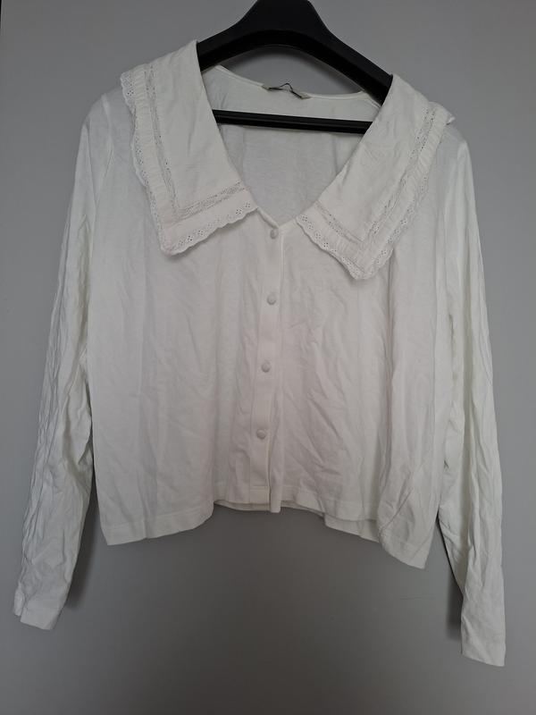 Винтажная коттоновая рубашка с большим воротником плечи 43,5 см ПОГ (от подмышек) 61 см рукава 59 см ПОН 62,5 см длина 55,5 см нюанс на крайнем фото: пузырьки из воздуха ( воротник)