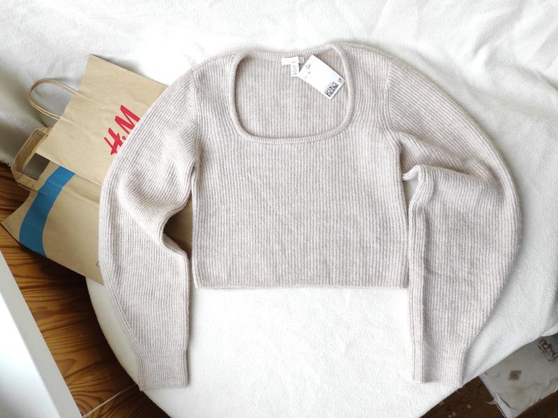 джемпер H&M (для беременных) р. XS можно на S Очень мягкий и нежный! 5% шерсть 40%акрил 52%полиэстер 3%эластан Замеры: длина от плеча- 42, подмышки -38 (тянется до 55см), рукав от плеча-60
