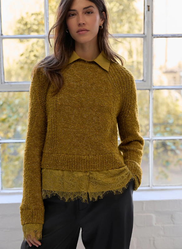 Джемпер цвет масла, мягкий, теплый. Размер большой: длина 73 см (вместе с нижним слоем), ширина под рукавами 62 см, рукав от воротника 85 см с манжетом.