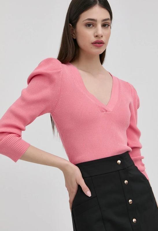 Стильний жіночий джемпер Morgan в ідеальному стані. Виготовлений з екологічного матеріалу LENZING™ ECOVERO™. Має приталений фасон, модні буфи на рукавах та елегантний V-подібний виріз з декоративними ґудзиками. Тонкий, еластичний трикотаж для максимального комфорту. • Стан: В ідеальному стані. • Розмір: M. • Склад: 70% віскоза (LENZING™ ECOVERO™), 30% поліамід. Заміри (добре тягнеться): • Плечі: 40 см • Рукав: 50 см • Пахви (напівобхват): 38 см • Довжина: 60 см