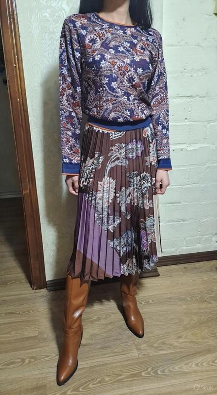 Продається **розкішний жакардовий джемпер від французького бренду Promod** — тепла знахідка для стильної зими! ✨ - **Дизайн**: Глибокий синій фон з яскравим жакардовим візерунком — східні пейслі, квіти та орнаменти в теракотово-помаранчевих, білих та бордових тонах. Контрастна помаранчева та синя окантовка на горловині, манжетах і подолі — акцент, що робить джемпер особливим. - **Матеріал**: М'який трикотаж з легким блиском — теплий, комфортний, ідеальний для холодної пори. - **Розмір**: S (42–44) — класичний прямий крій, довгі рукави. - **Стан**:Добрий але внутри є катиші. Візерунок яскравий, без пошкоджень — готова гріти та прикрашати. Це не просто джемпер — це **бохо-шик з французьким шармом**: для повсякденних образів з джинсами, спідницями чи навіть як яскравий акцент до класики. Компліменти гарантовані, а настрій — святковий! Не пропустіть — такі яскраві жакардові перлини розлітаються миттєво! Цей красень чекає на нову господиню! 🌟❤️