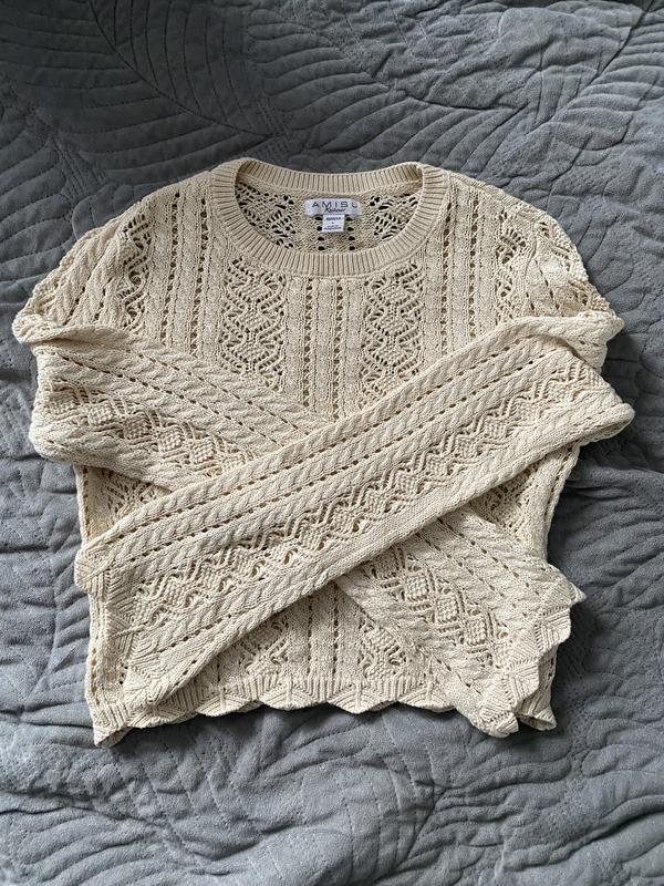 Ажурна жіноча укорочена кофтинка з довгими рукавами