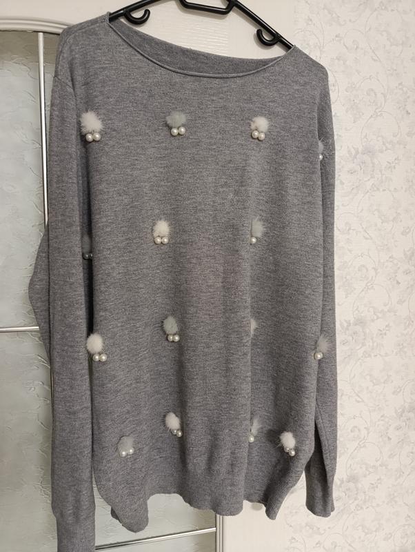 Джемпер оверсайз, праздничный. Украшения не пришиты, а на заклепках. Длина 66см, ПОГ 61см, рукав 64см, плечо 11см.