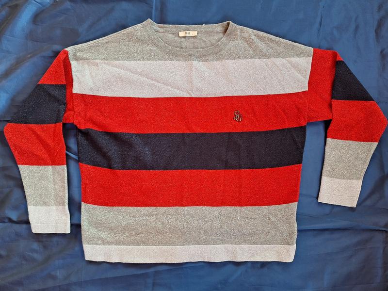 праздничная кофта бренда SOGO в полоску с люрексом, обладательны цвета. Без бумажной бирки.