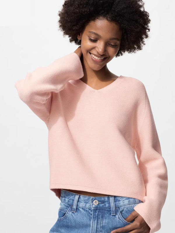 Состав: 100% хлопок 3D Knit Seamless Cotton Relaxed V Neck Jumper бесшовный тип 3D вязки неглубокий V-образный вырез свободно облегающий дольше разделение сзади расслабленный силуэт