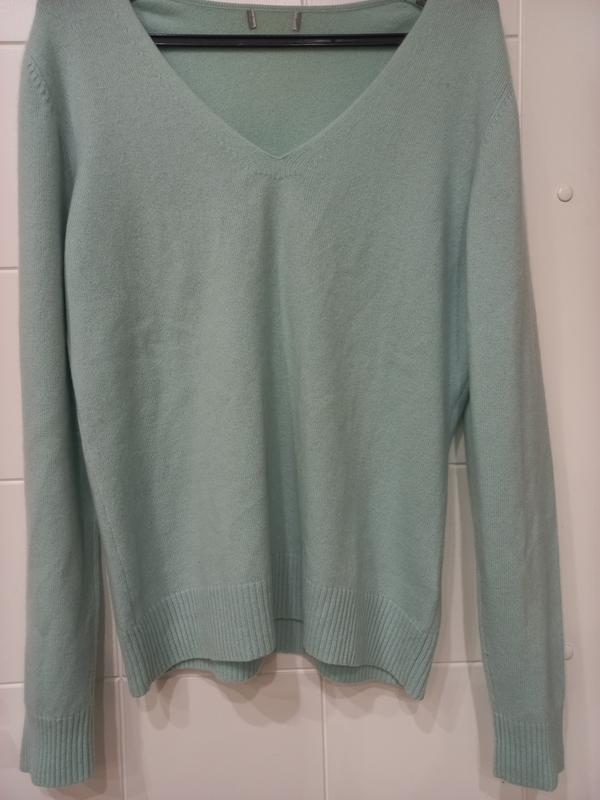 в идеальн.стан.кашемир.плеч 40+, пог 52+, поб 45+,дл.62+,доеж.рукав.65+,мятного цвета.