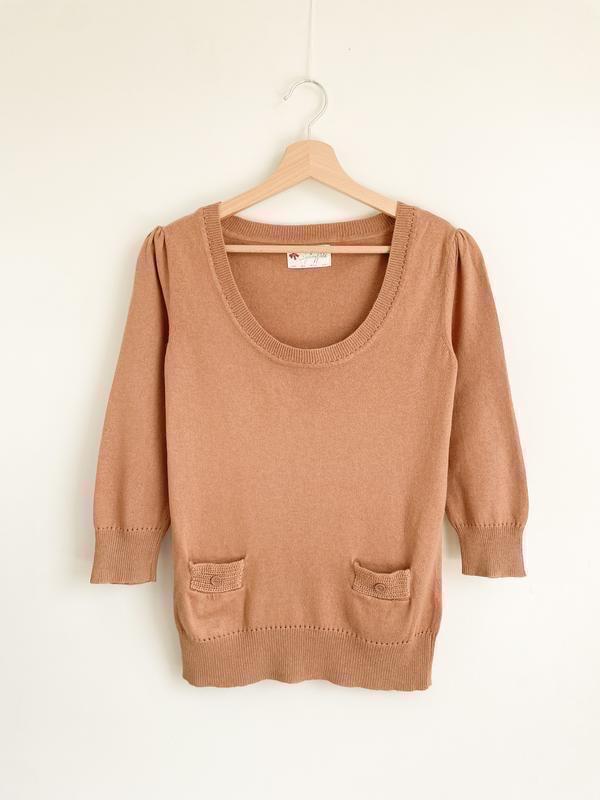 Светр джемпер у чудовому стані, теплий, у складі вовна, не кусається, не світиться, приємний до тіла, внизу милі кишеньки} Трендовий колір кемел Розмір S Заміри: плечі ~ 40 см пахви ~ 42 см ширина по низу ~ 35 см довжина рукава від плечового шва ~ 46 см загальна довжина ~ 58 см Матеріал добре тягнеться.