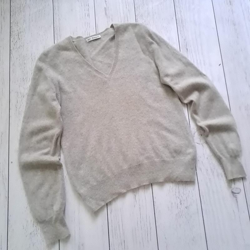 это джемпер светло серого цвета с V-образным вырезом. Материал: изготовлен из кашемира. Дизайн: имеет классический прямой крой, длинные рукава с манжетами в рубчик и нижний край также с рубчиком. Стиль: Свитер имеет повседневный, минималистичный дизайн, который легко сочетается с другой одеждой. Состояние безукоризненно Тканина м’яка, тягнеться размер s Замеры ⤵️⤵️⤵️ Длина- 53см Плечи-36см Рукав - 72/64 см Пог-47 см ☝️☝️☝️☝️ внимание!!!! Если у Вас лицеприятное отношение к секонду и запаху который присутствует данные категории товара, то 56 УТРИМАЙТЕ от покупки. Благодарю. Условия ⤵️ Пересылаю новой и укроштой. Возвращение и обмен отсутствует (или поговоренности) Все вопросы решайте к отправке товара. Наложенный платеж есть, по цене перевозчика за доставку в обе стороны. Нова пошта 150 грн. Укр-почтой 50 грн. Лодки от 2 лот. Отправка каждого дня. Суббота и воскресенье- отправки уточняйте.Яркая обновочка каждой недели. Обожняю своих покупателей и свою работу. Всем миру и добра.
