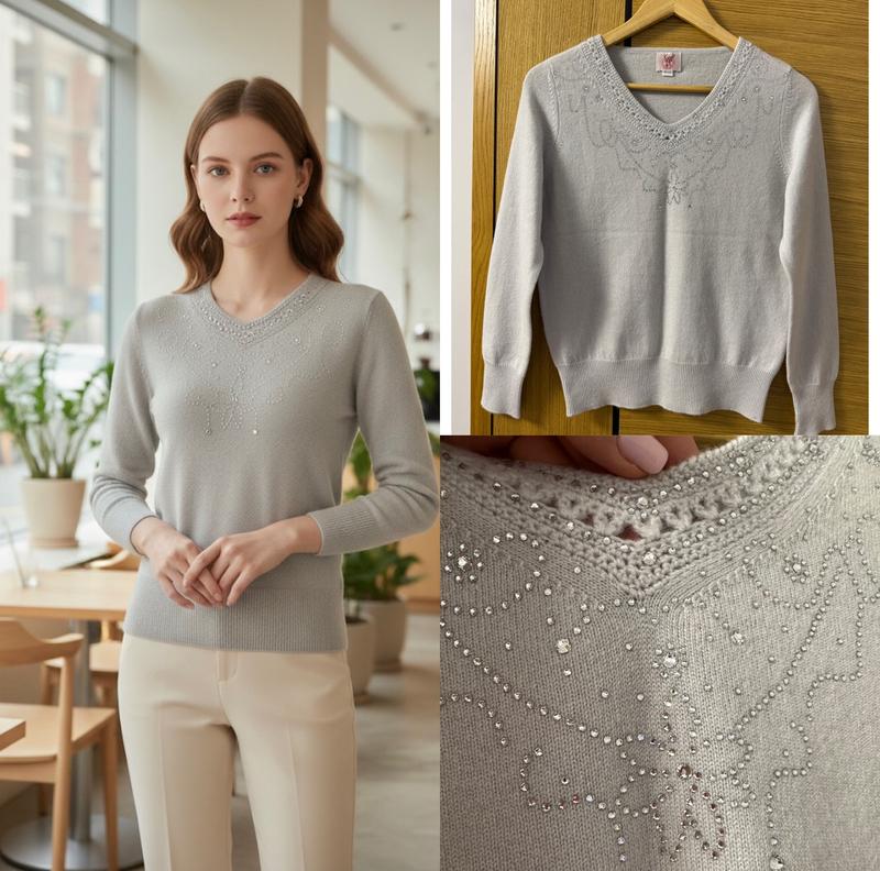 💯 % кашемір нарядна кофта светр Стан нова! Якість бездоганна! Біля вирізу красивий гаптований декор ! Каміння міцно тримається ! Пог 46-53 см Довжина від плеча 56 см Рукав 59 см