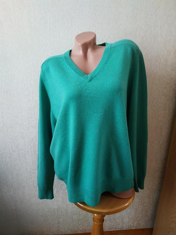 Испанский теплый, мягкий джемпер приятного зеленого яблочного цвета (ближье 8 фото), качественный плотный кашемир. Нюансы - зашитая маленькая дырка на рукаве (4фото), немного растягивающиеся резинки на манжетах. Длина от плеча 64 см, Пог 60 см, низ 49 см, плечо-рукав от горловины 76 см (реглан-погон)