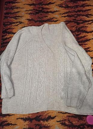 Свитер джемпер белый шерсть Подмышки 63 Длина 64 Рукав от горловины 70 Состояние нормальное , есть дырочка на рукаве