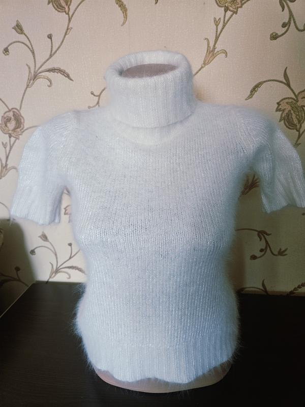 Длина 45 см, полуобхват груди 44 см,ширина внизу 39 см,плечи 33 см,рукав 14 см.Колир молочный. Мягкий, приятный к телу.