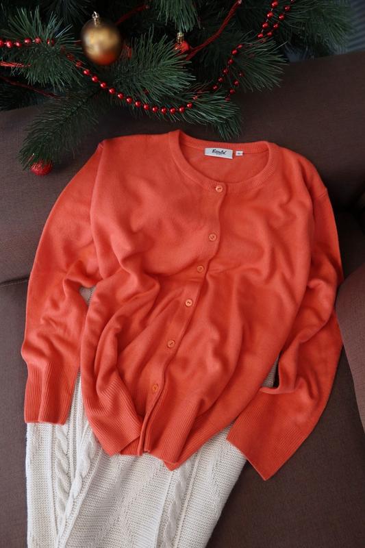 Ще одна приємна до тіла кофтинка в розмірі L Колір не такий яскравий як на фото. Довжина 65 Пог 60 Пот 55 Рукав 60 Плече 12