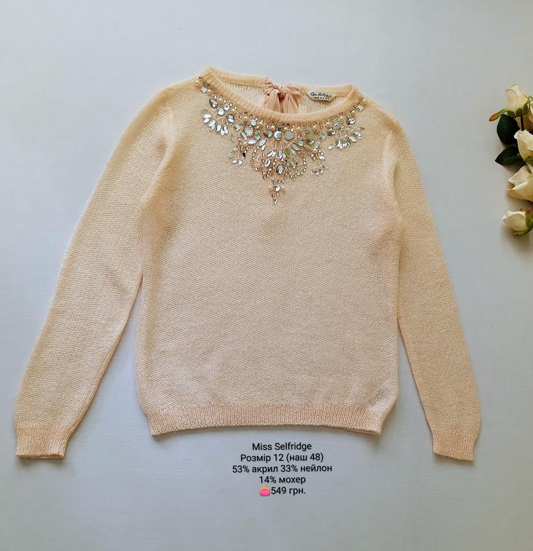 Джемпер мохер от Miss Selfridge. Размер 12 (наш 48). Состав: 53% акрил 33% нейлон 14% мохер. Замеры: Состояние новое.