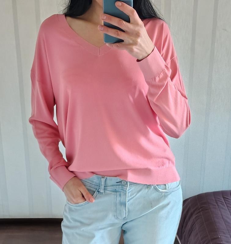 Пуловер, джемпер в нежном розовом цвете, чайной розы, акварельный розовый, в составе 65% вискоза, 35% нейлон. Размер указан М, но едет, как оверсайз, ориентироваться по замерам: плечи приспущены пОГ-60см длина рукава-56см длина по спинке -65см Одето на рост 178см, 86/65/99 Состояние новой вещи, без нюансов. Предоставят дополнительные фото.