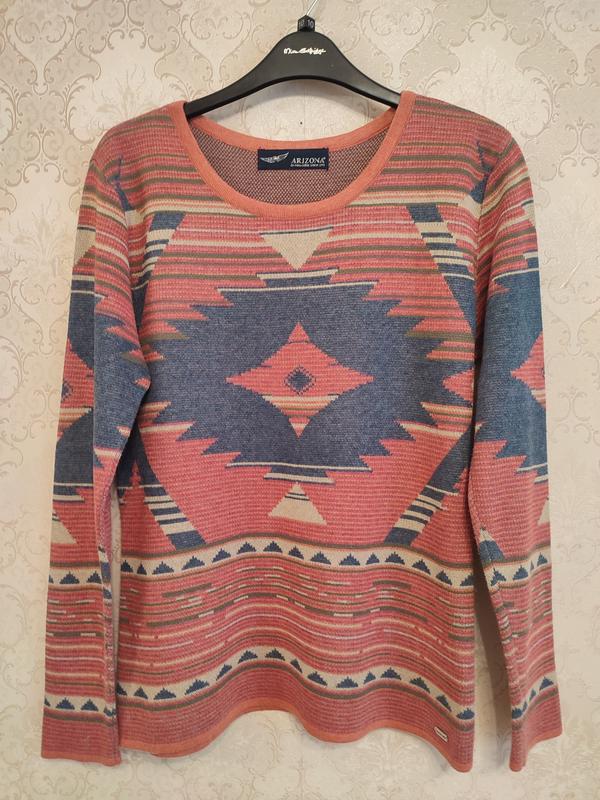 Джемпер от бренда ARIZONA, состояние идеальное, без дефектов, мягкая приятная тактильно, размер указанный EUR 36/38 это M ориентируйтесь на замеры: длина 62, пог 47 тянется до 50, полуобхват талии 44, ширина низ 50, длина рукава 60, замеры сняты в спокойное состояние, трикотаж тянется. Склад тканини: 50% cotton, 50% Асrilik.
