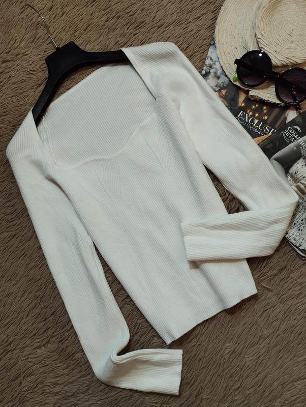В идеальном состоянии. Гарний джемпер в рубчик. Ткань средней плотности, тянется. Размер 10/38/М, но смотрите по замерам Замеры (полуобхват): Груди 30 (тянется до 46) Рукав 63 Длина от плеча 47