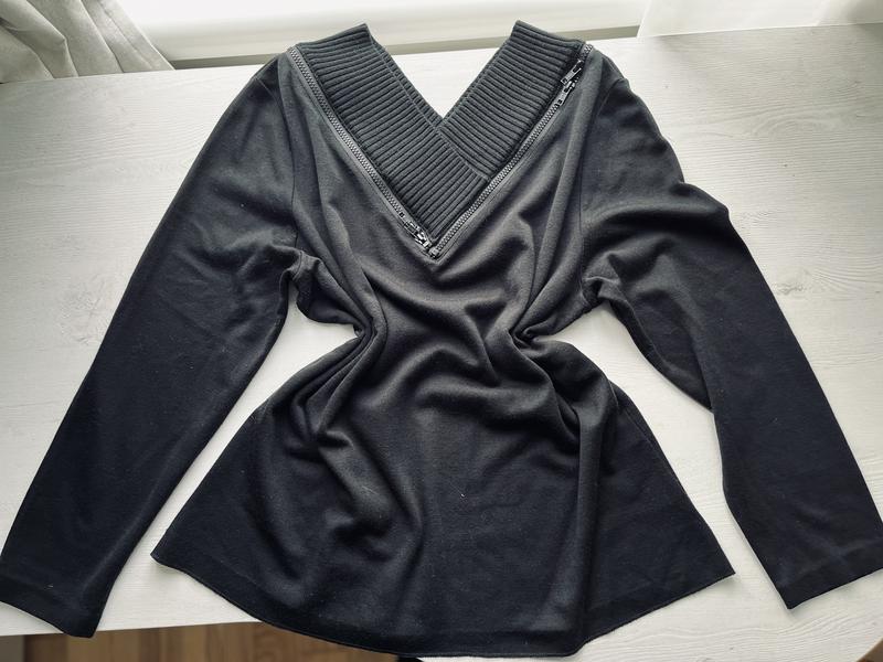 Стильный шерстяной джемпер из Италии с отличием качества Woolmark. Прямой крой и v-образный вырез с интересной отделкой в виде воротника с молниями, который можно по разному стилизировать в вашем образе. Очень интересная модель в отличном состоянии за доступную цену!