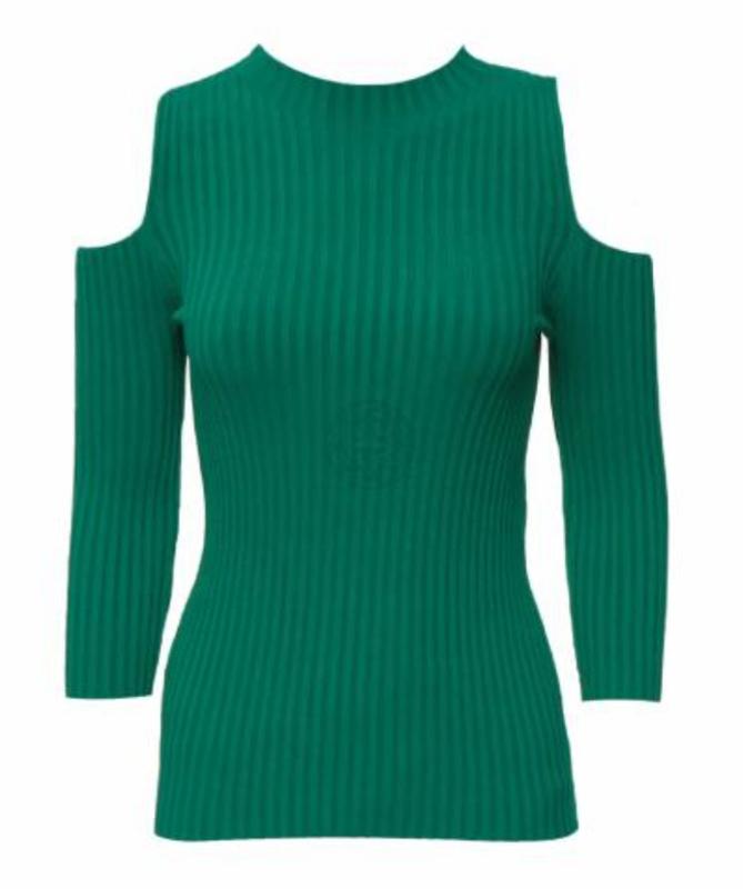 Изящный изумрудный джемпер в рубчик от бренда Maje с эффектными вырезами на плечах (cold-shoulder style). Модель имеет приталенный силуэт, высокий воротник-стойку и укороченные рукава, подчеркивающие фигуру и добавляющий образу современности. Благодаря составу с преобладающим содержанием вискозы (69%), материал мягкий на ощупь, приятно прилегает к телу и имеет легкий шелковистый блеск. Замеры: пог- 42+ ( хорошо тянется) длина- 60 указан размер- 3