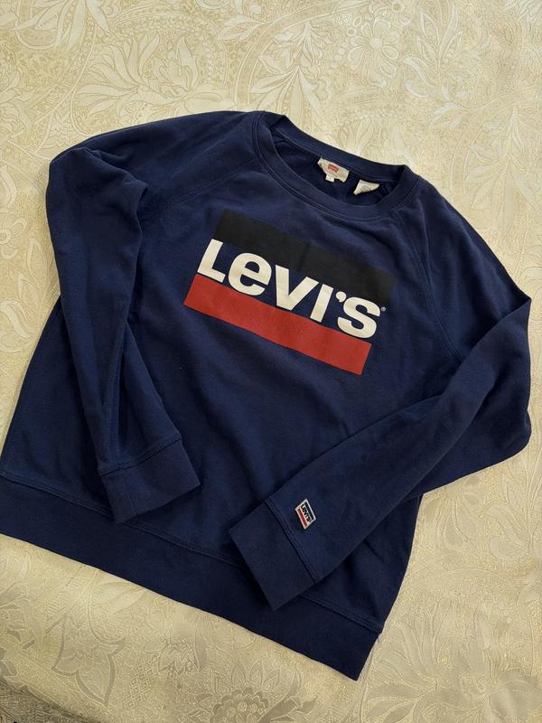 Оригінальний світшот від легендарного американського бренду Levi's. • Колір: темно-синій • Матеріал: бавовна з додаванням поліестеру • Дизайн: класичний логотип Levi's на грудях • Крій: прямий, комфортний • Довгі рукави з манжетами • Круглий виріз горловини • Якісні шви та обробка Ідеально підходить для повсякденного носіння. Поєднується з джинсами, спортивними штанами та іншим casual одягом. Зручний у догляді, зберігає форму після прання.