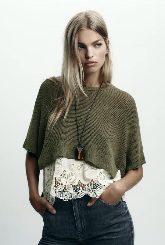 Нова кофтинка Zara оригінал Плетена кофтинка з ажурною майкою По бірці Л підійде і для М
