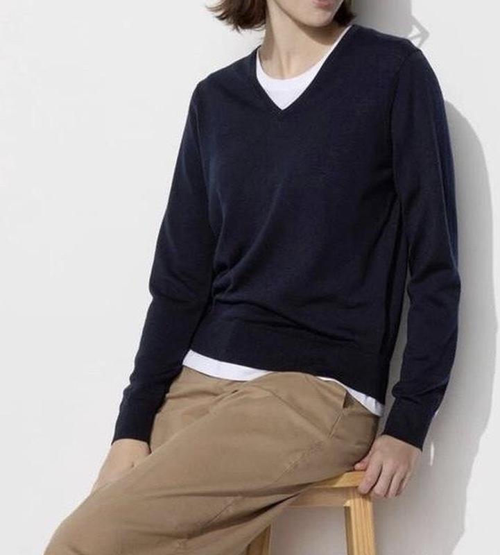 Стан ідеальний вовняний джемпер темно-синього кольору,не товстий По бирці xl,підійде і на m/L,дивіться заміри На Xl буде більш по фігурі,на M/L вільніший Тягнеться Довжина 62 Пог 49 Рукав 65 М’який