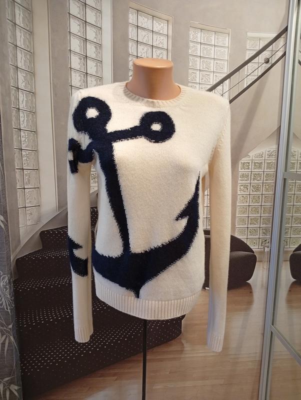 стильный джемпер в модной морской тематике от итальянского бренда люкс-сегмента No21, составная часть 100% высококачественная очень мягенькая шерсть, якорь с58% мохер, 37% полиамид, 5% шерсть, размер38, замеры на фото