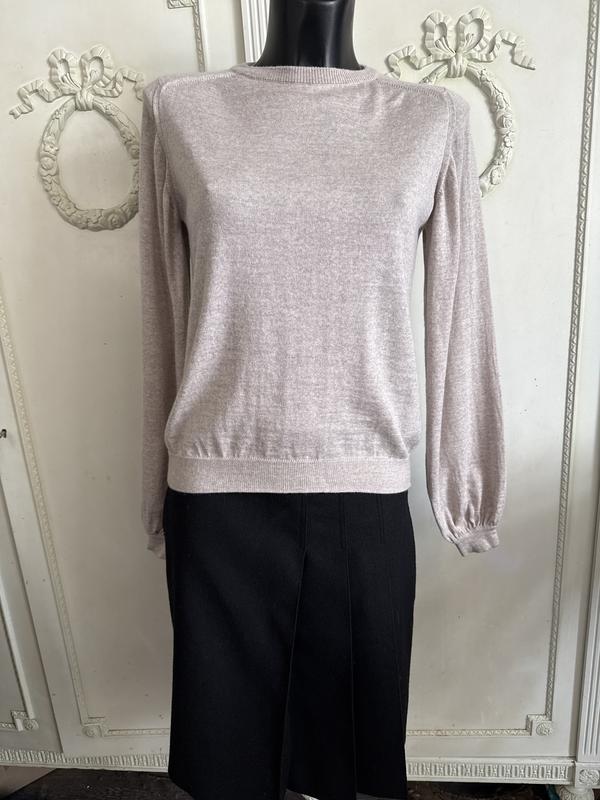 Колір бежевий. Склад:вовна-100/ . Модель з обʼємним рукавом. Розмір по бірці-S. Заміри: довжина-58 см, ПОГ-45 см, ПОБ-41 см, рукав від ворота-74 см. Стан ідеальний.