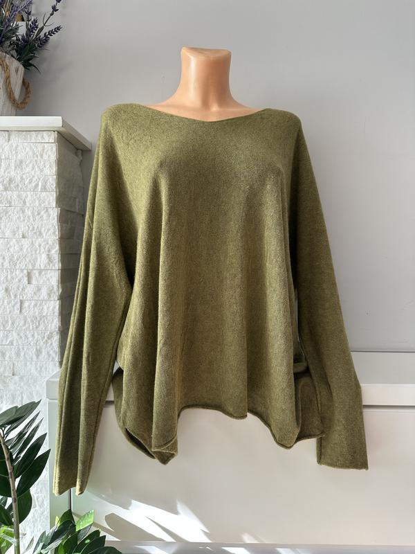 Неймовірно якісний і стильний джемпер Оливкового кольору З чудовим складом лана,кашемір,віскоза Р.с-л Довжина 62,Пог 65