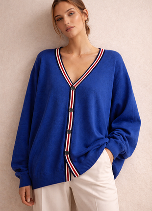 Кофта на гудзиках синя, оверсайз Полуобхват под рукавами 63 см, длина 81 см, рукав 73 см, тянется