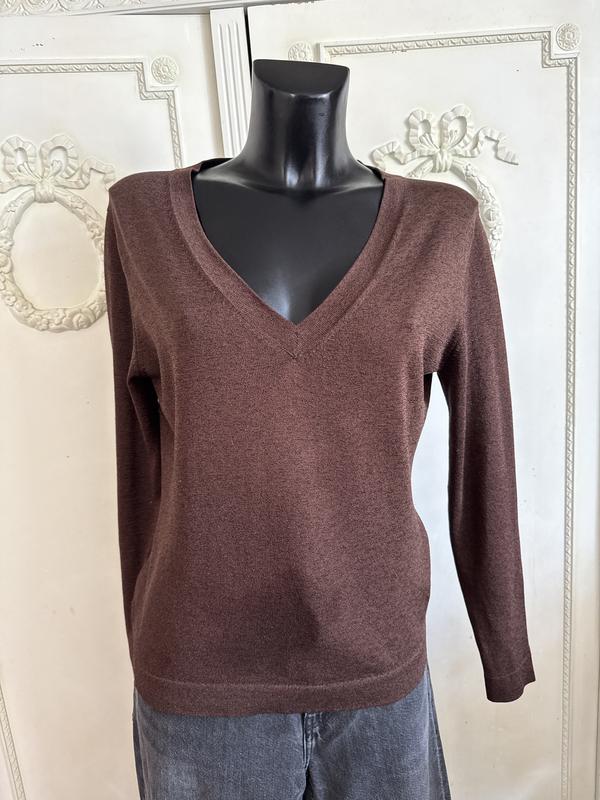 Колір коричневий. Склад:шовк/люрекс(72/28).Люрексова нить коричневого кольору. Бірка із розміром відсутня. Заміри: довжина -60 см, ПОГ-46 см, ПОБ-44 см, рукав-61 см. Стан ідеальний.
