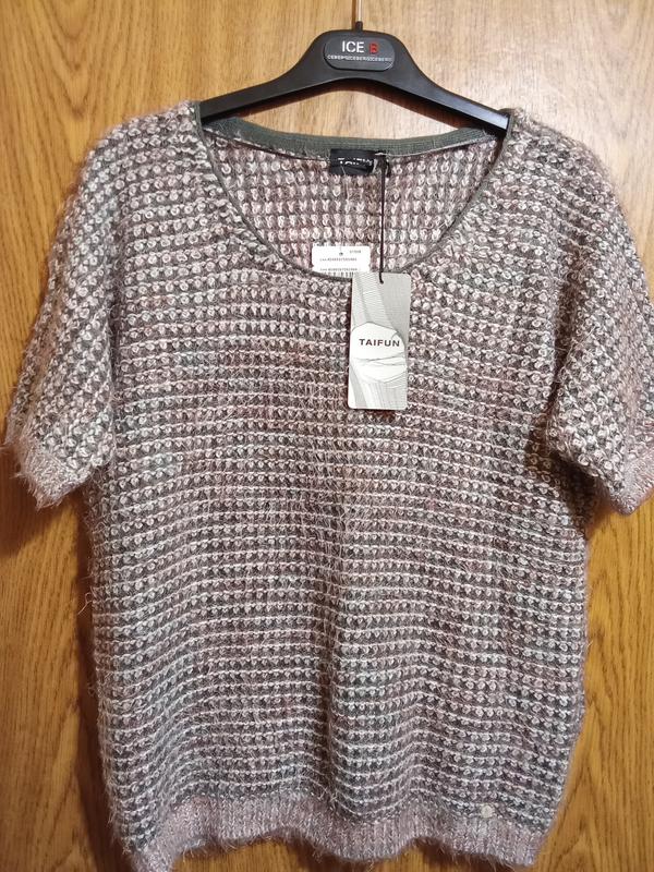 очень классный джемпер с коротким рукавом реглан,супер мягкая очень приятная к телу фактура с небольшим ворсом,классное сочетание цветом серого и пыльной розы,размер 40,ориентируйтесь по замерам пог 54+ длина 59 поб по резинке 46+ сидит и смотрится очень стильно,первоначальная цена 75.99. евро качество прежде всего!!!