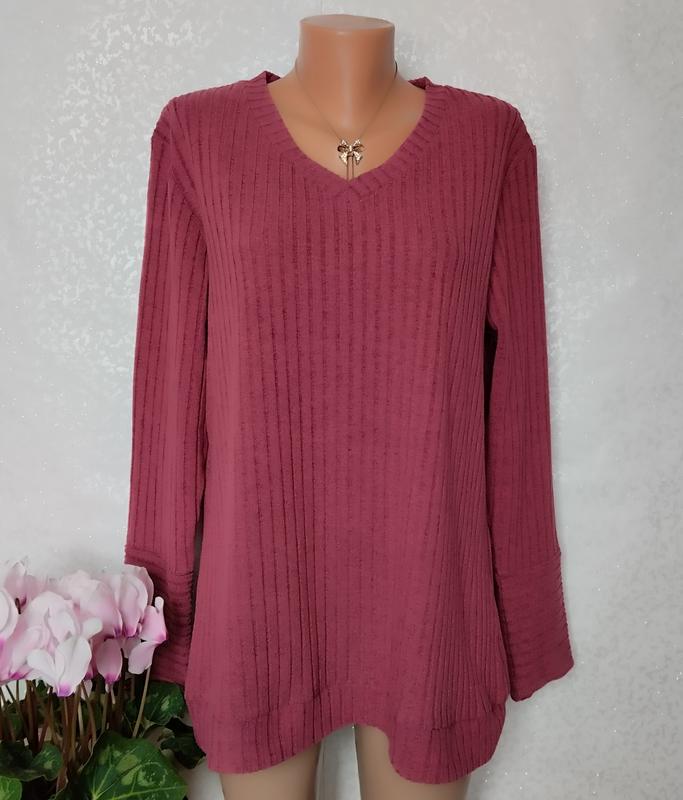 Класний м'якенький светр джемпер, тканина в крупний рубчик. Розмір вказано 1ХЛ, дивіться заміри: довжина 73 рукав 63 пог 56-76 пос 58-78 низ 62-80, добре тягнеться