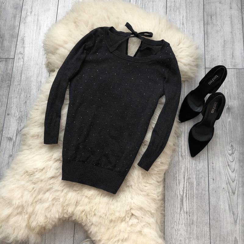 Красивая комбинированная кофточка,спереди трикотаж в графитовых камешках,сзади шифон. Бантик на спине придаёт особую изюминку