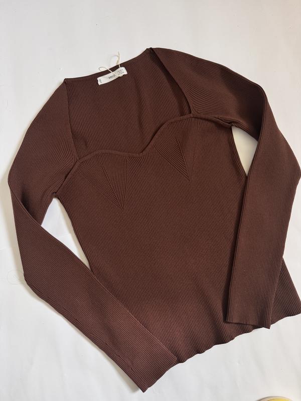 Джемпер в рубчік від Mango в шоколадному кольорі Розмір М Довжина - 55 см Напівобʼєм грудей - 35 см, тягнеться до 46-48 см