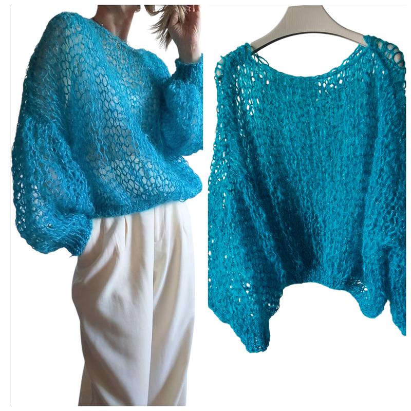 Джемпер лёгкий, объемной вязки, новый, р.S/M, 30% мохер 25% п/э 45%РА. Рукав от горловины 74 грудь 72 длина 53