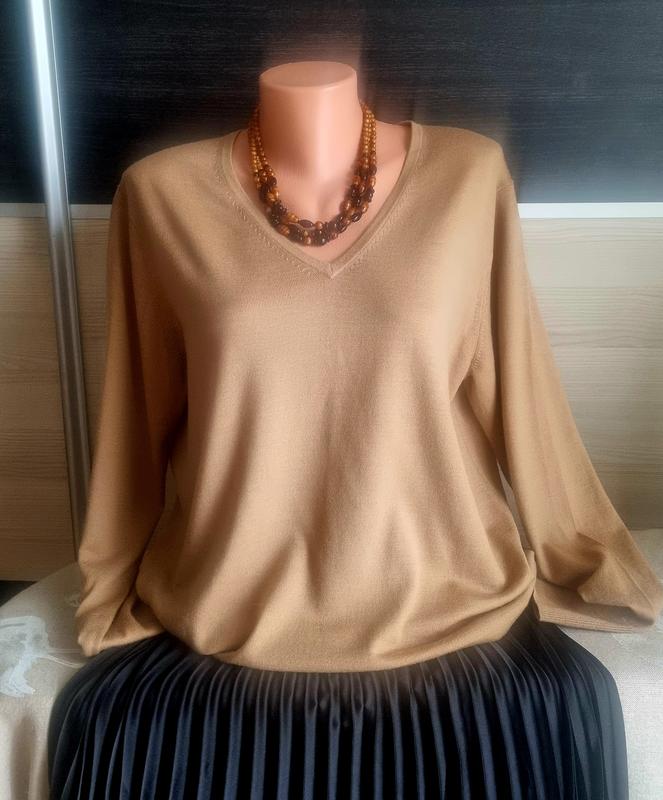 Джемпер из ультратонкой мериносовой пряжи из коллекции японского бренда Uniqlo Связан гладкой вязкой Низ рукавов и джемпера - широкая резинка. Вырез - мыс, обвязанный тонкой резинкой. Есть в 2-х цветах: нежно-зеленый и светло-коричневый Размер - ХЛ Размер: EUR - ХL Замеры: ПОГ - 56 см, Длина - 70 см, Длина рукава - 65 см. Ширина плечей - 44 см Бренд UNIQLO был основан в 1949 году в Японии Тадашием Янай, и с тех пор он стал одним из самых успешных и влиятельных модных брендов.. Его характеристики - высокое качество материалов, пошива, фурнитуры, и современные утеплители, уникальные принты и узоры, ткани высшего качества