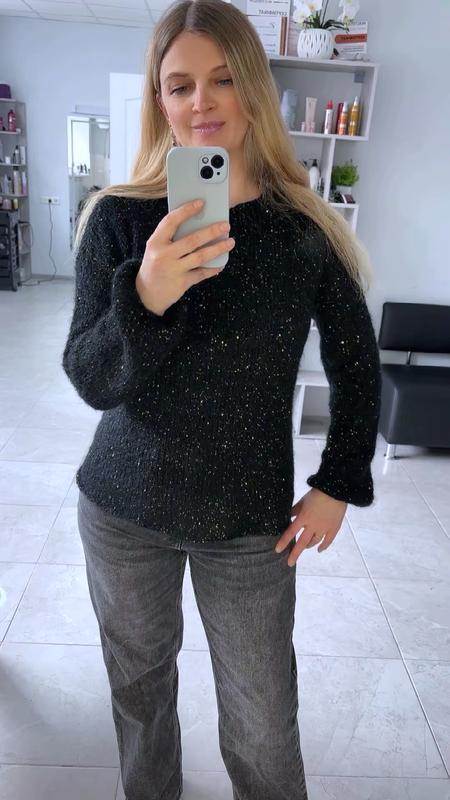 В наявності светрик з чорного мохеру з додаванням золотистої мікро пайєтки Підійде на розмір с як вільний овер м і невелика L