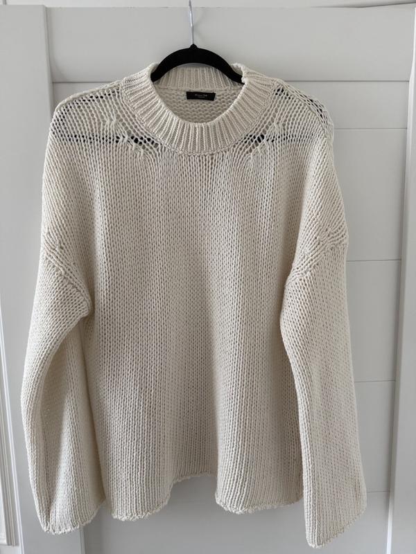 Жіночий светр від massimo dutti. 45% бавовна , 55% поліестер, розмір L, плече 27 см, довжина рукава 60 см, рукав клешений , ширина рукава по низу 20 см , довжина джемпера 85 см, п/о грудини 58 см,п/о по низу 66 см