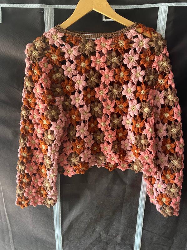 В'язана "кроше" кофтинка Zara Яскравий оригінальний дизайн ПОГ 53 Довжина 45 Розмір універсальний, від S до невеличкої L На етикетці вказаний S