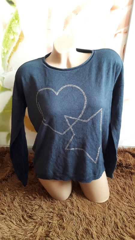Джемпер с стразами. Без дефектов ( пятен, катышек и зацепок). Цвет темно-синий вспышка осветляет. Размер М -Л . На рост до 170 см. Ориентируйтесь на замеры. Длина 54 ПОГ 45-48 Рукав от горловины 66 Спрашивайте буду рада ответить на все ваши вопросы!!! Смотрите другие мои объявления для Вас есть качественная и недорогая одежда !!!